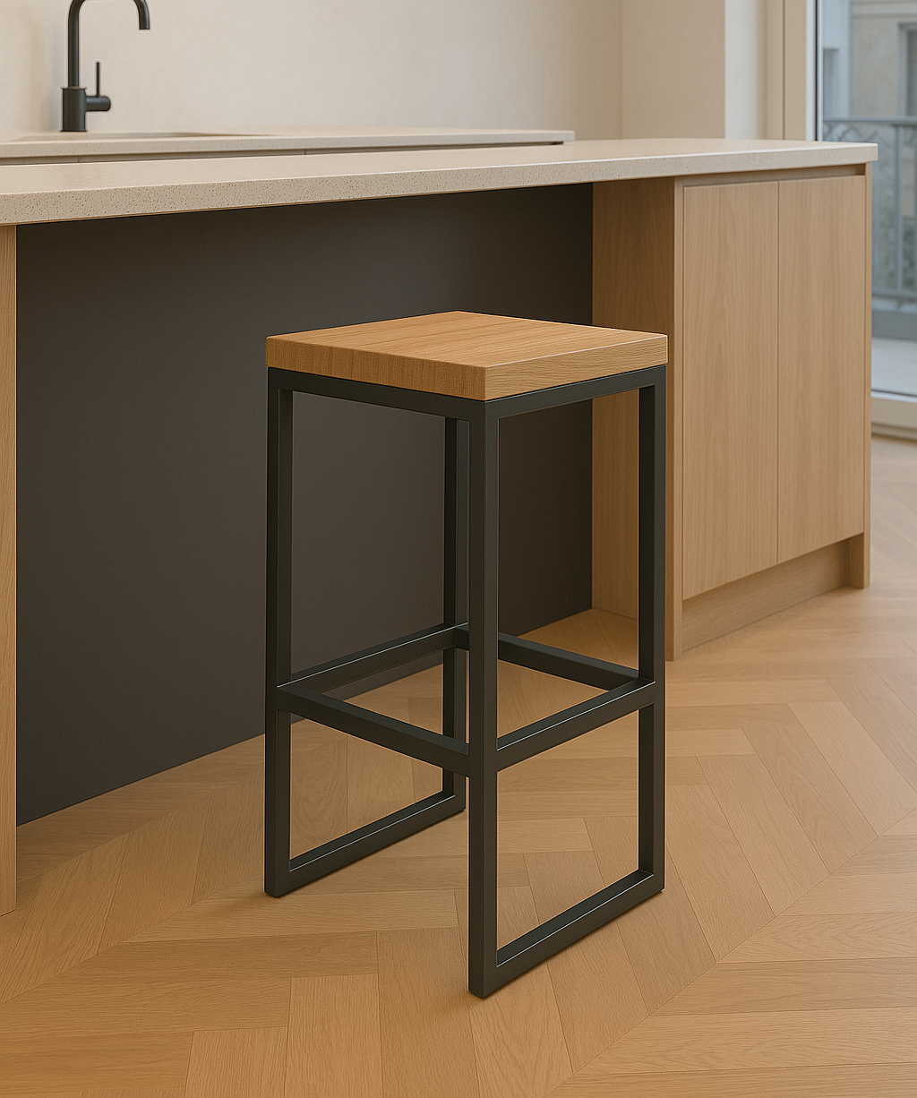 Hoker dębowy LOFT 4 – krzesło barowe to nowoczesne krzesło barowe stworzone z myślą o wnętrzach, które cenią minimalizm, surowy styl loftowy oraz wysoką funkcjonalność. To propozycja idealna do kuchni z wyspą, aneksu, baru czy kawiarni. Prosta, geometryczna forma i kontrastowe zestawienie litego drewna dębowego z metalową podstawą czynią go doskonałym wyborem dla zwolenników trwałych, estetycznych i ponadczasowych rozwiązań.