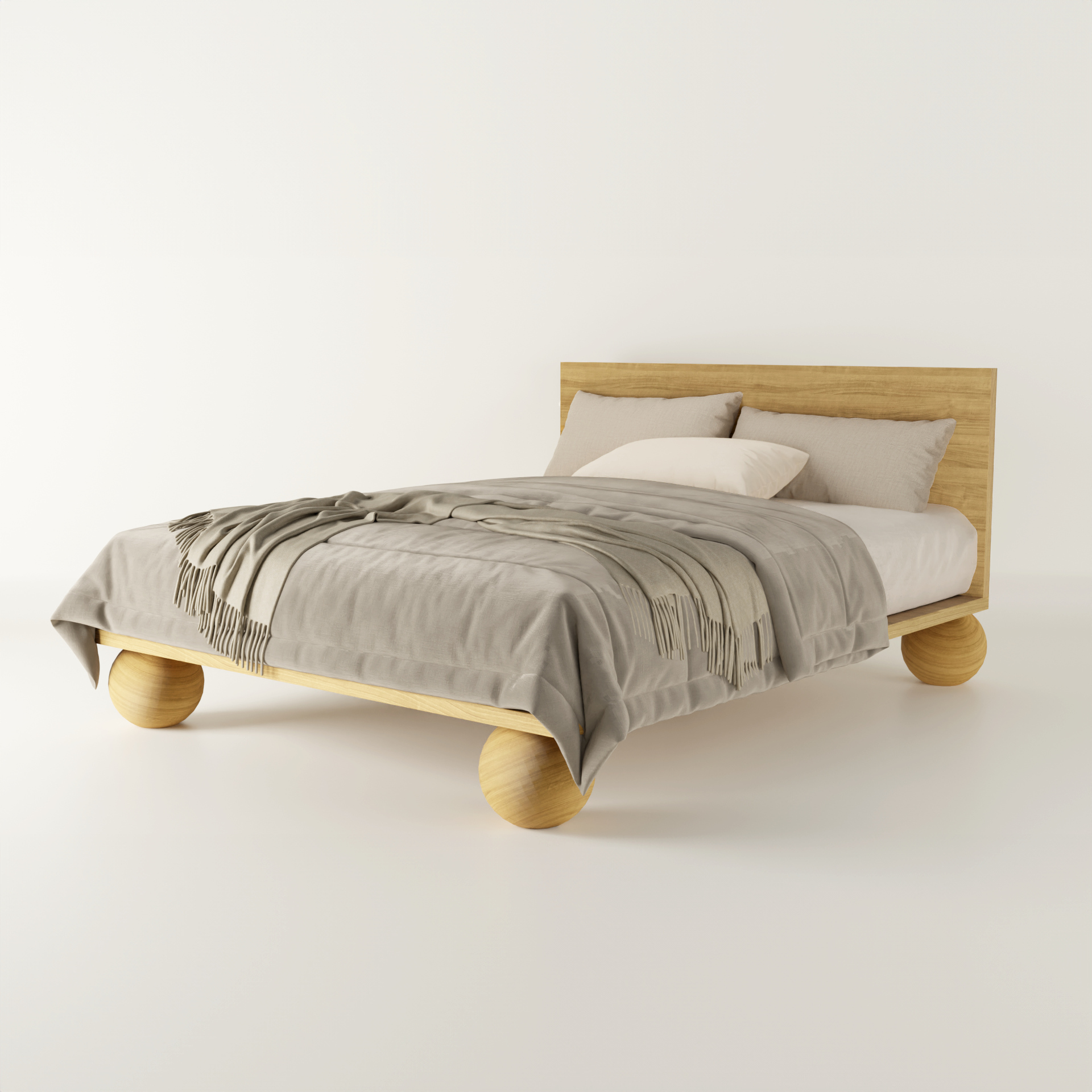 Jednym z wyróżniających elementów łóżka PALLA są jego charakterystyczne nogi w kształcie drewnianych kul. Te starannie wykonane nogi nie tylko zapewniają stabilność i solidne podparcie, ale także stanowią elegancki akcent, który podkreśla nowoczesny charakter mebla. Drewniane kule są precyzyjnie oszlifowane, co nadaje im subtelnego blasku i podkreśla naturalne usłojenie dębu.