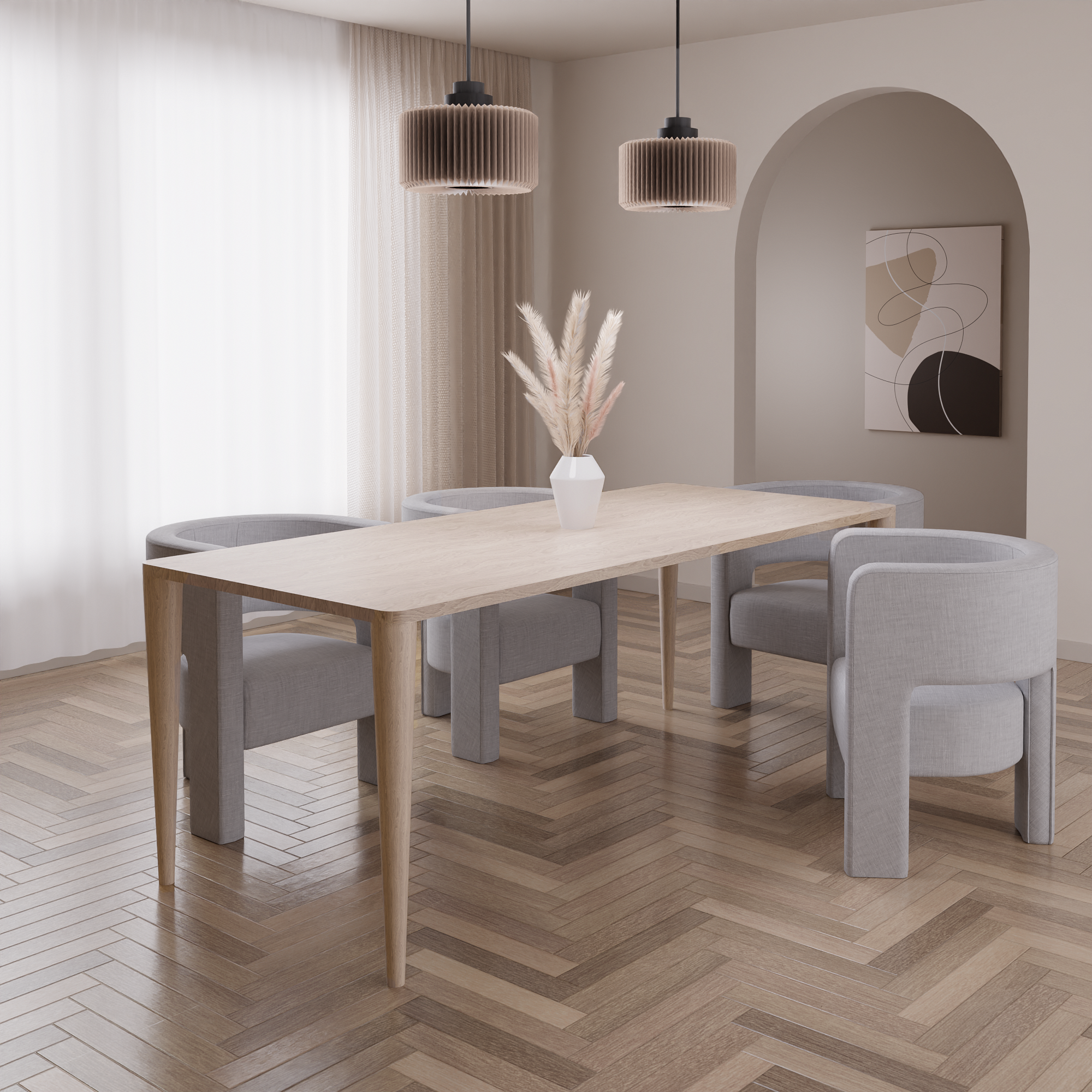 - Naturalny, lity dąb – Wykonany z najwyższej jakości drewna dębowego, stół ARIES zachwyca trwałością, elegancją i wyjątkową fakturą, która wprowadza ciepło do każdego wnętrza.