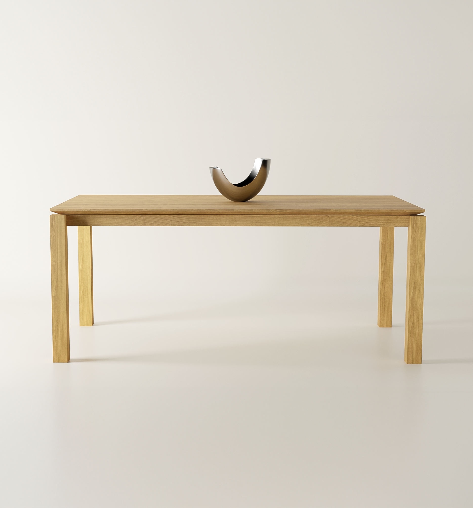 Blat stołu wykonany został z litego dębu o wyraźnym usłojeniu i naturalnym, jasnobeżowym wybarwieniu. To stół beżowy z litego dębu, który dodaje wnętrzom światła, harmonii i ponadczasowej elegancji. Naturalne olejowanie lub matowe lakierowanie podkreśla rysunek drewna i chroni jego powierzchnię przed zabrudzeniami oraz uszkodzeniami. Jasny stół drewniany idealnie wpisuje się w aranżacje jadalni w stylu japandi, skandynawskim i nowoczesnym.