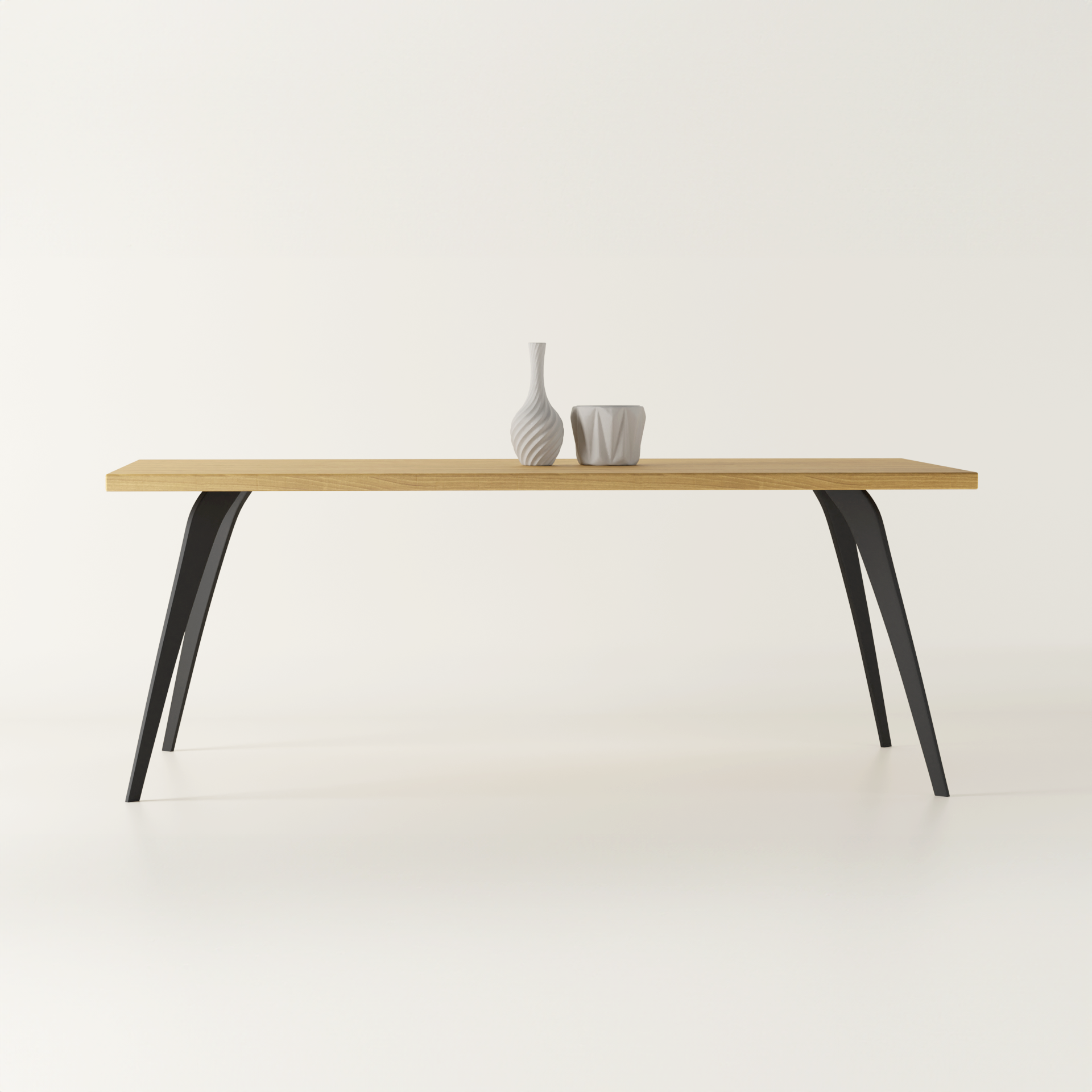 - Nowoczesne nogi z czarnej stali: Nogi stołu zostały wykonane z wytrzymałej, malowanej proszkowo stali w kolorze głębokiej czerni. Ich delikatnie zakrzywiony kształt nadaje całości lekkości i elegancji, jednocześnie zapewniając stabilność i trwałość.