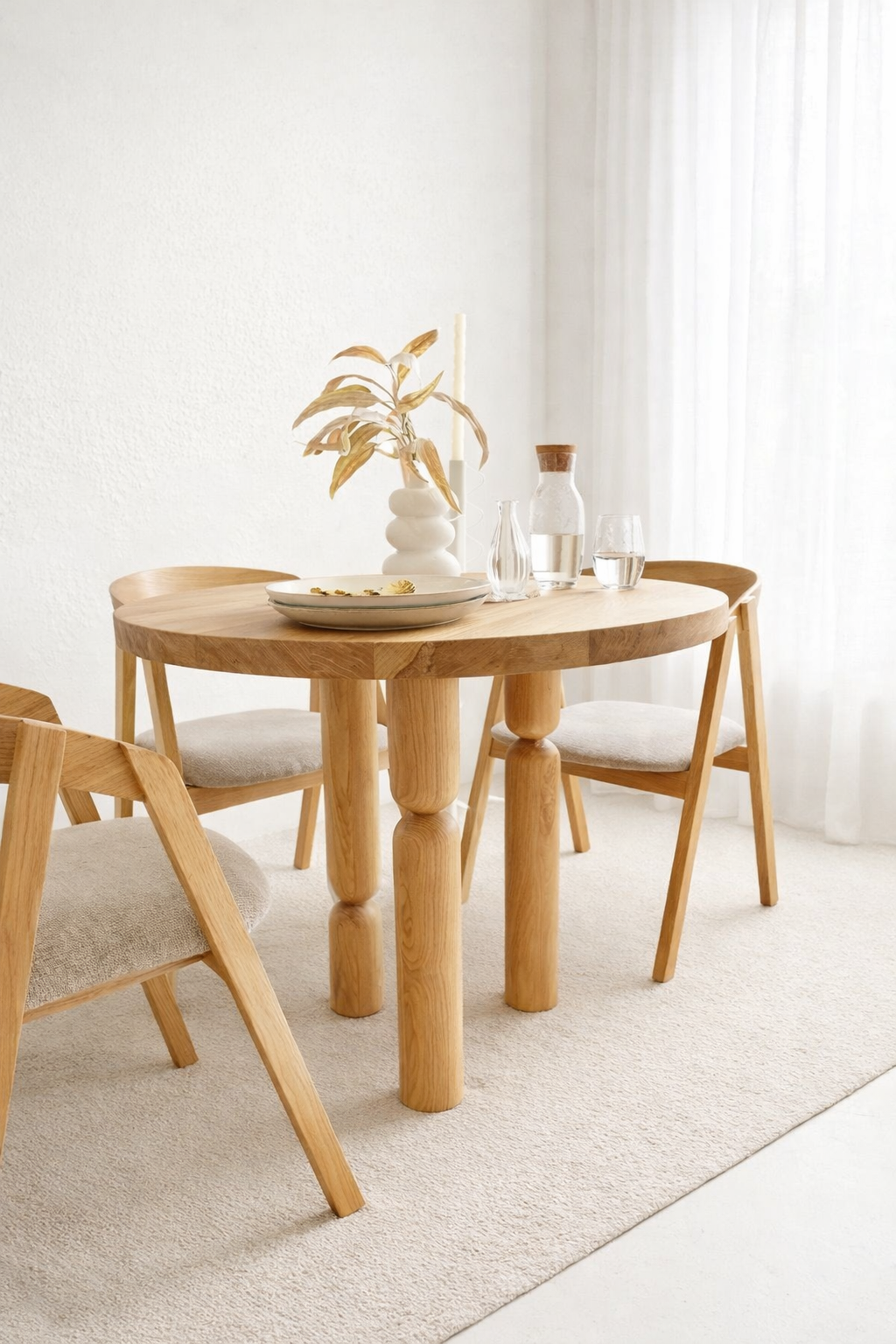 Stół dębowy okrągły DUSY – połączenie naturalnej elegancji i stylu Japandi