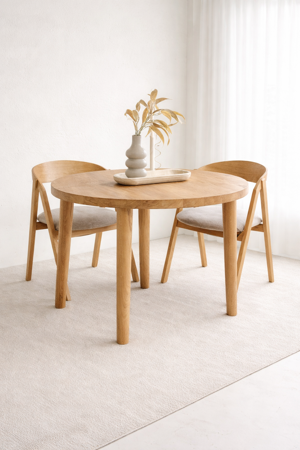 Stół dębowy okrągły RIST – połączenie naturalnej elegancji i stylu Japandi