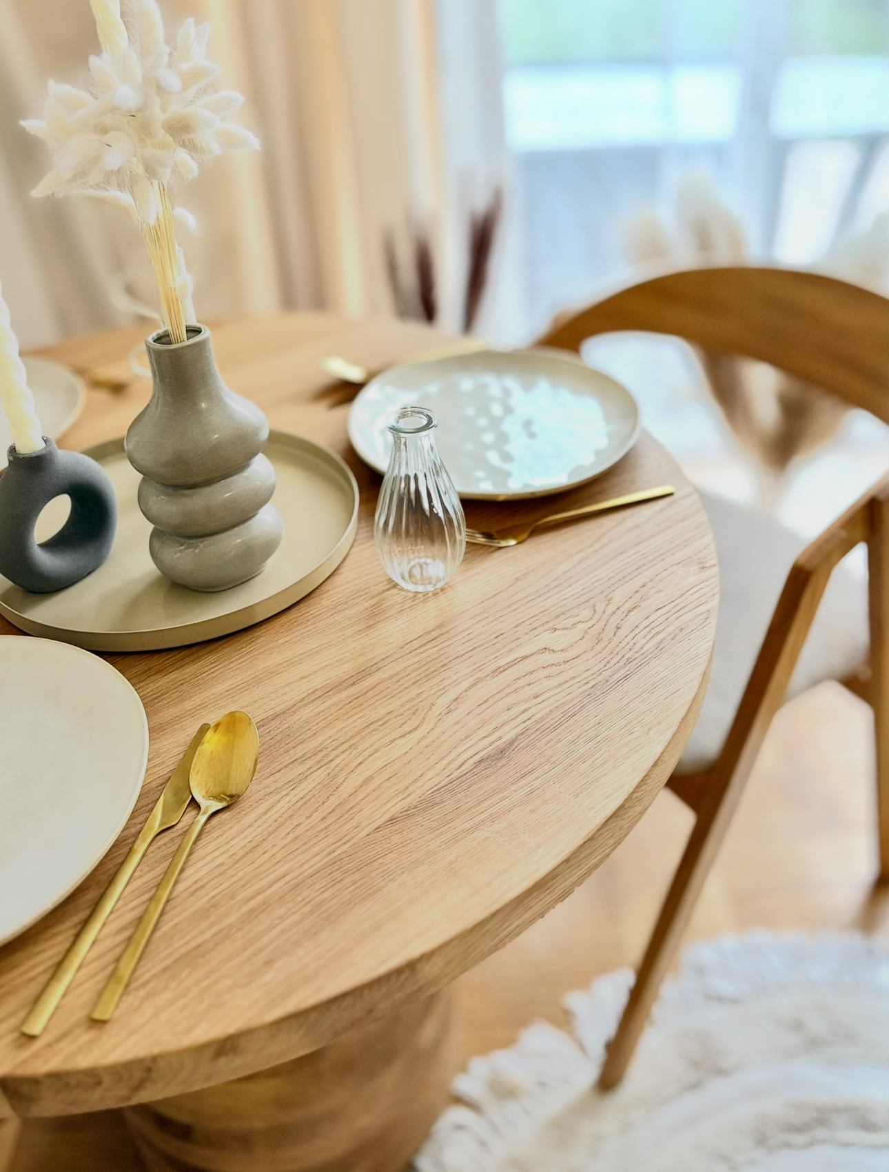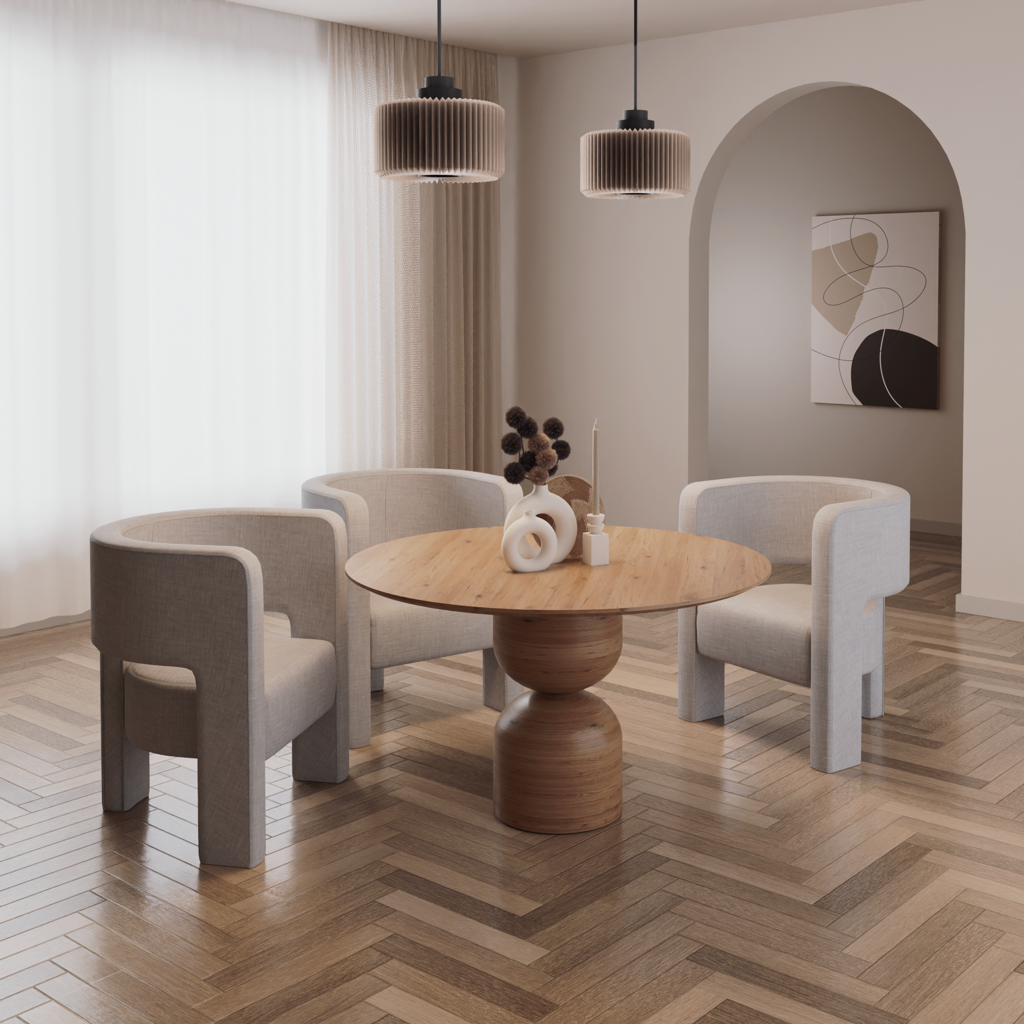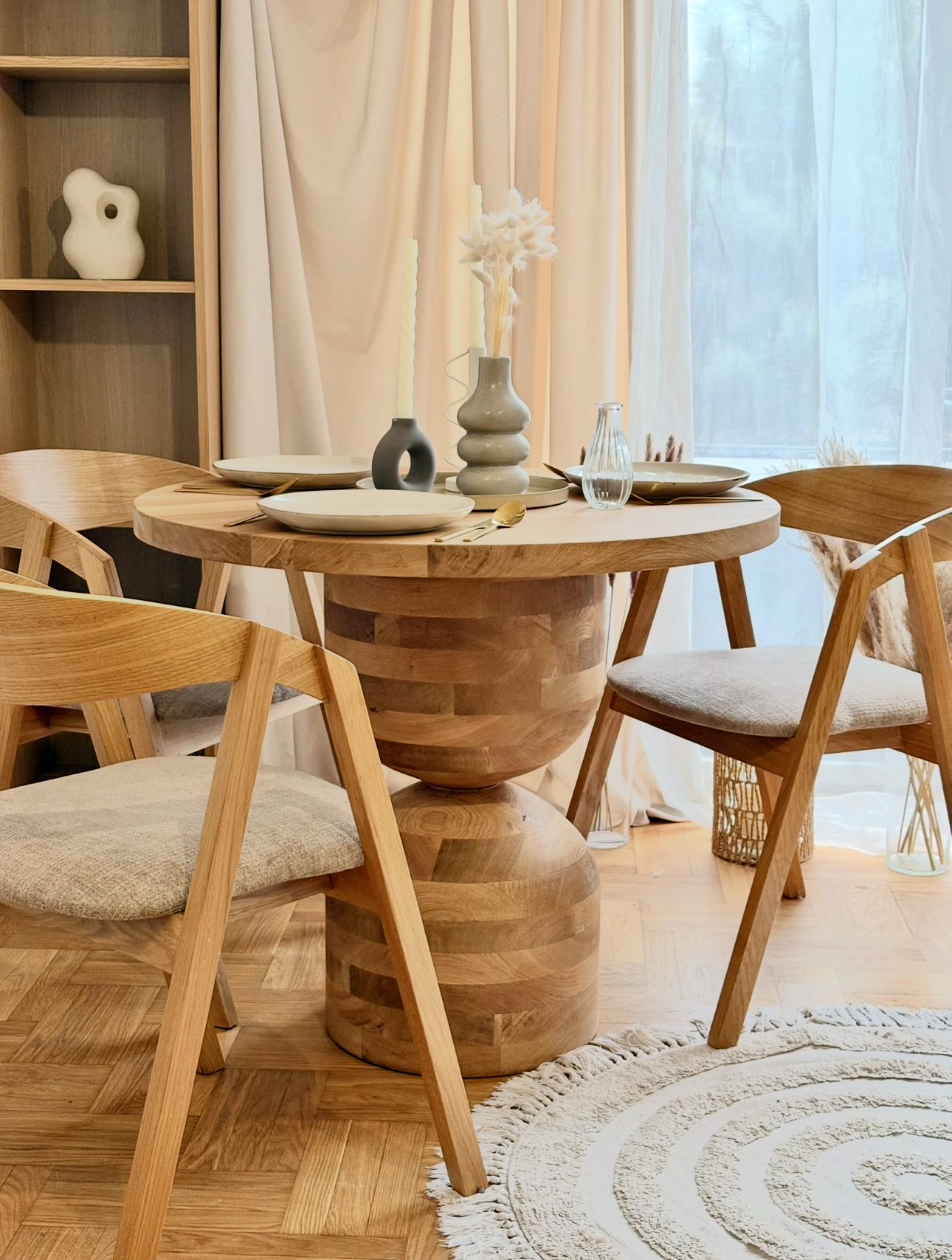 - Nowoczesny design w stylu japandi i skandynawskim – Minimalistyczna forma, naturalne materiały i subtelne zdobienia czynią ten stół idealnym elementem nowoczesnych wnętrz, wprowadzając harmonię i ciepło.