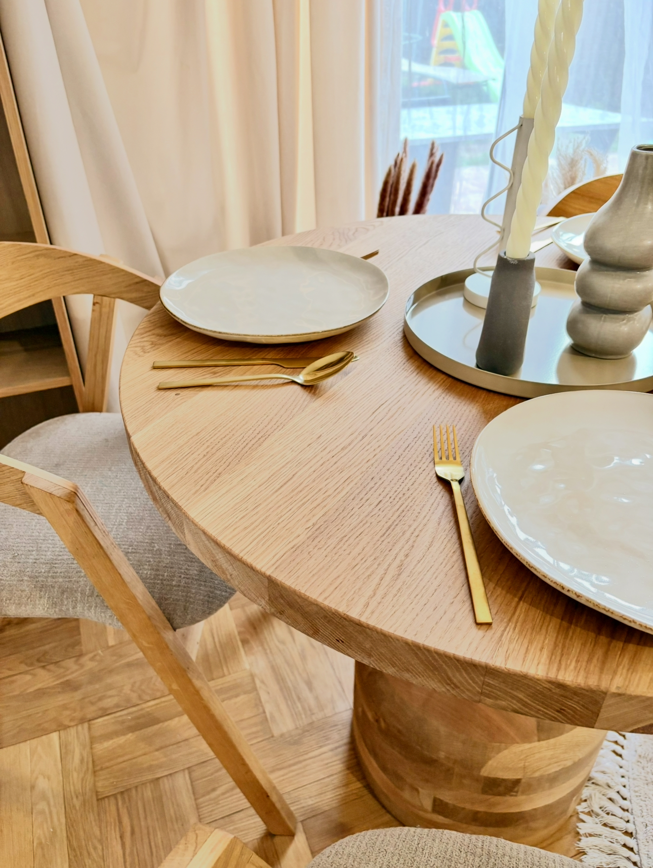 Dodaj do swojego domu wyjątkowy mebel – stół dębowy okrągły GLORY, który odmieni Twoją przestrzeń i stanie się symbolem elegancji oraz stylu.