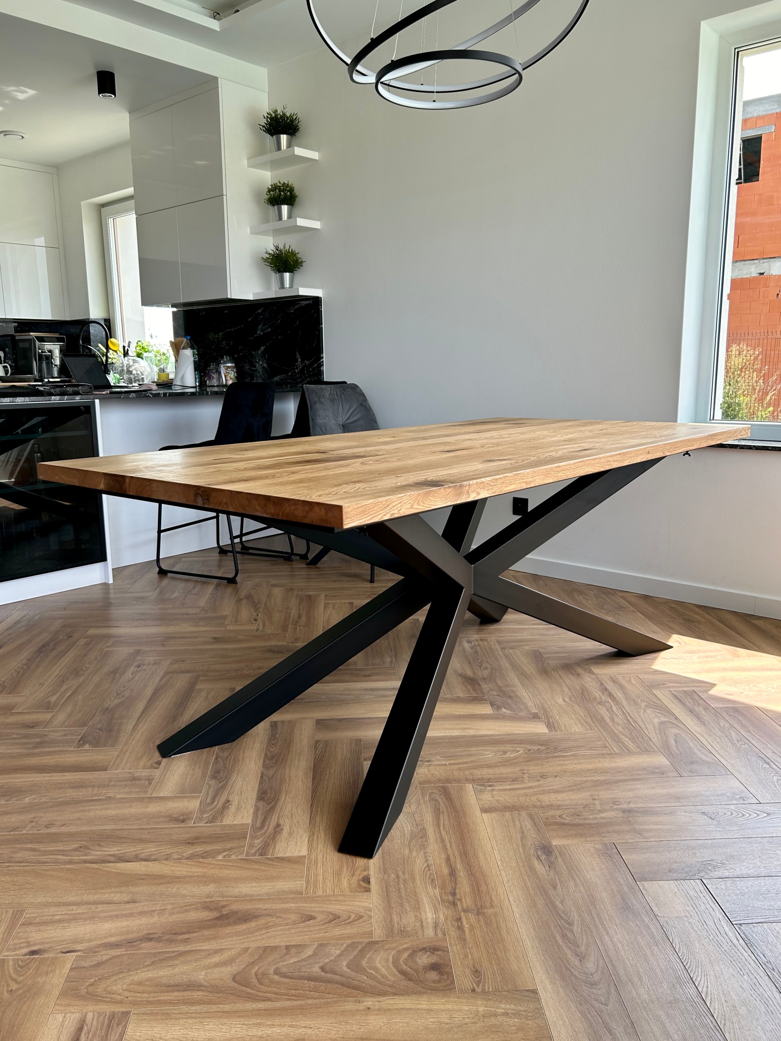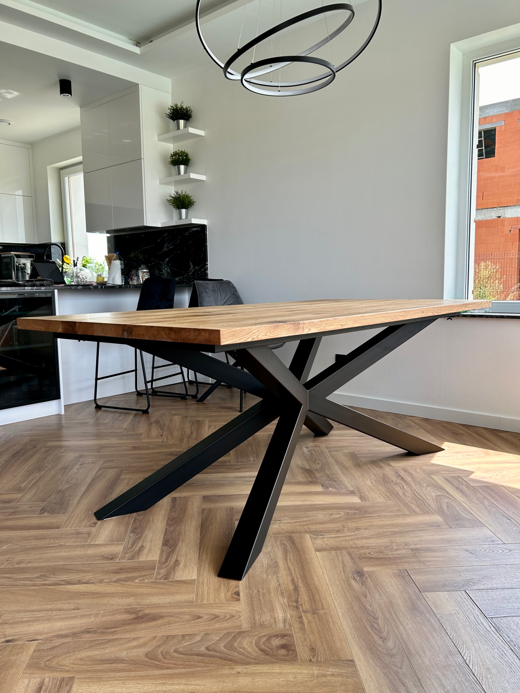 Przedstawiamy Państwu stół wykonany z litego drewna dębowego w stylu rustykalnym lub z litego drewna bezsęcznego (za dopłatą), z nogami PAJĄK 2 Masywna, ciężka i solidna konstrukcja, która jednocześnie wyglada lekko i nowocześnie zagwarantuje niebywałą trwałość. Stół będzie mógł cieszyć Nasze oczy przez długie lata, nie tracąc przy tym nic ze swojej niepowtarzalnej, prostej i pięknej formy. Blat stołu licuje się wzorem i usłojeniem z dostawkami.