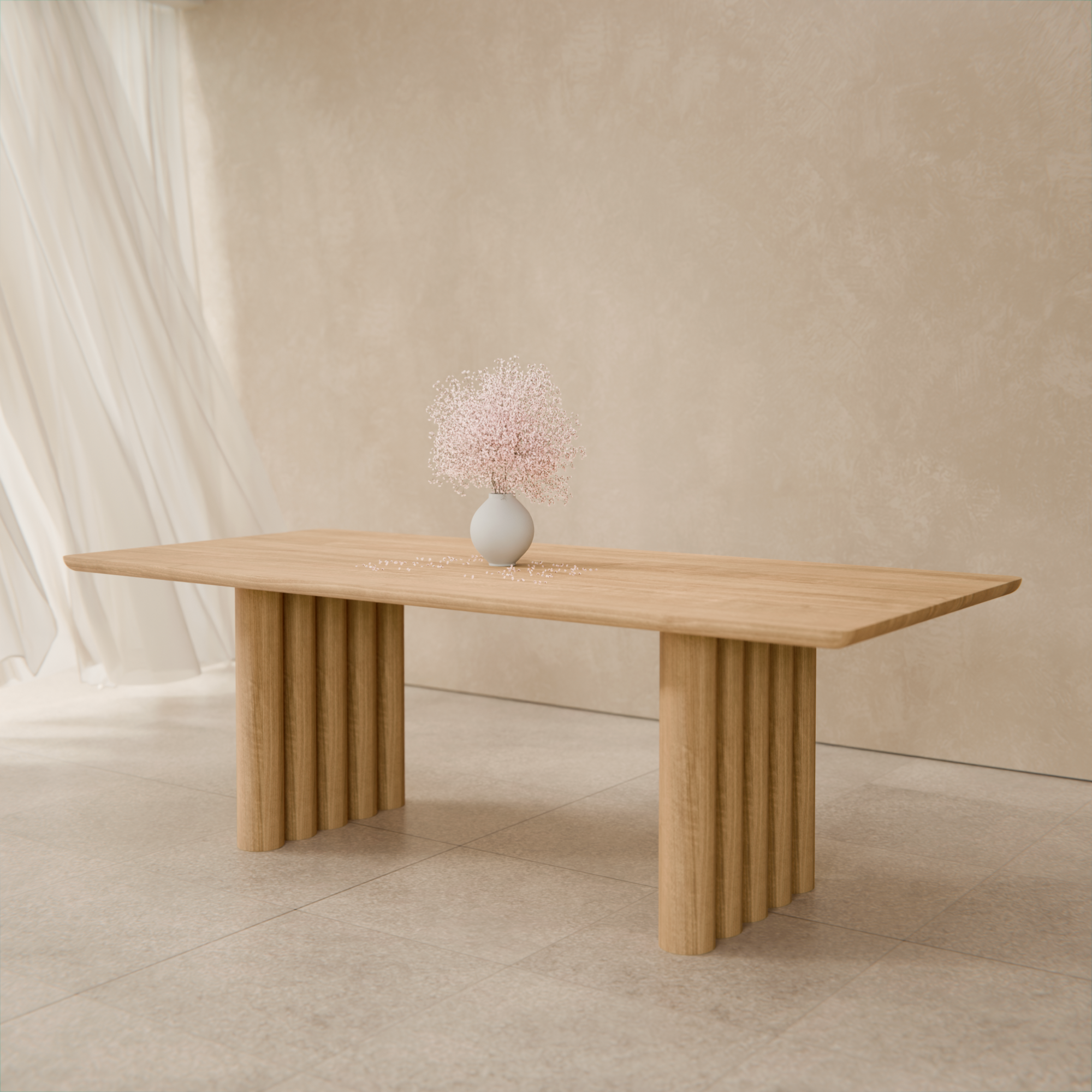 Stół REYA to nie tylko stół jadalniany, ale centralny punkt domu, wokół którego toczy się codzienne życie. Wykonany w całości z dębu naturalnego, łączy w sobie klasyczny design, nowoczesną formę i niezrównaną trwałość. To mebel, który dodaje wnętrzu ciepła, elegancji i charakteru, tworząc idealną bazę dla każdej aranżacji.