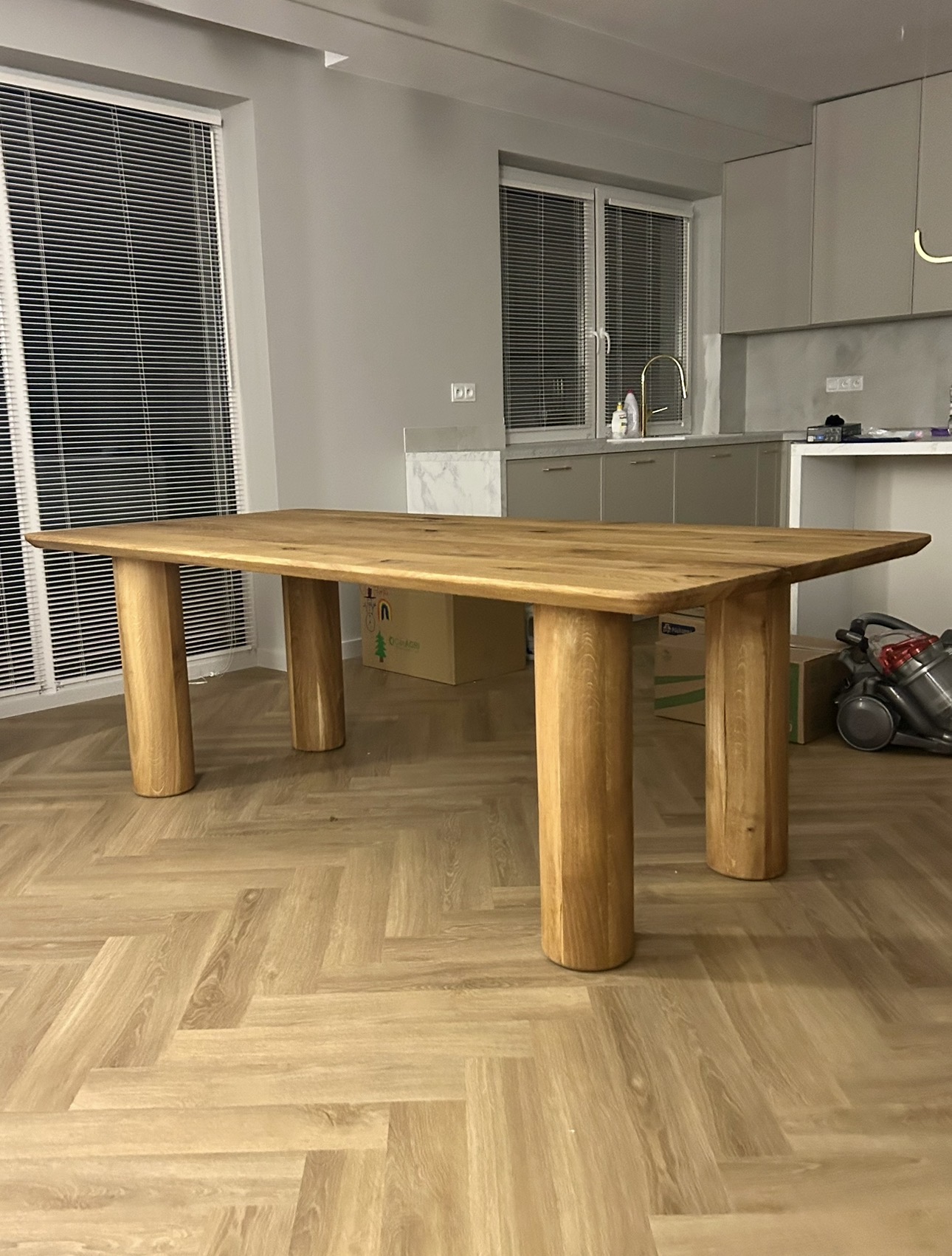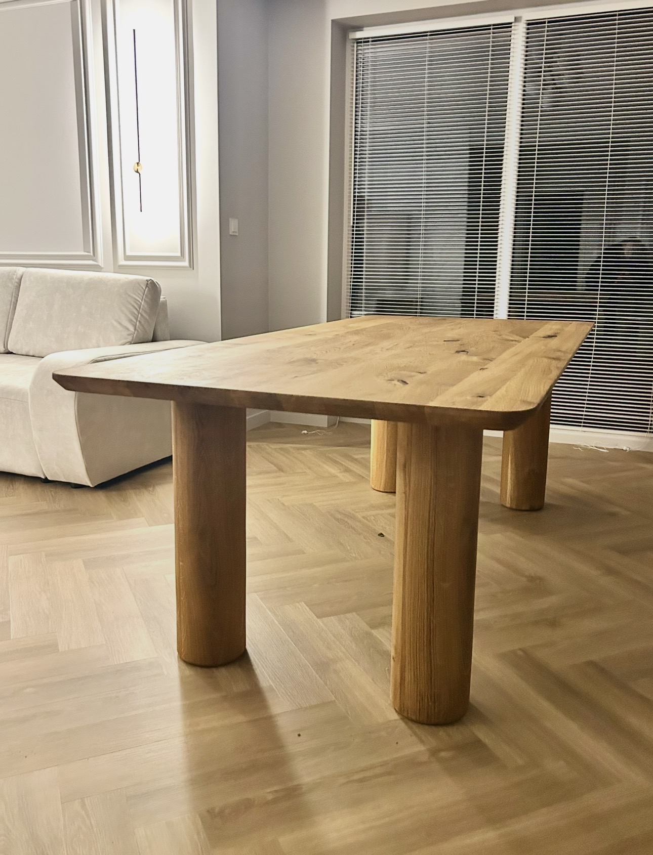 Stół dębowy TIBIS – monumentalna forma w naturalnym, jasnym wykończeniu