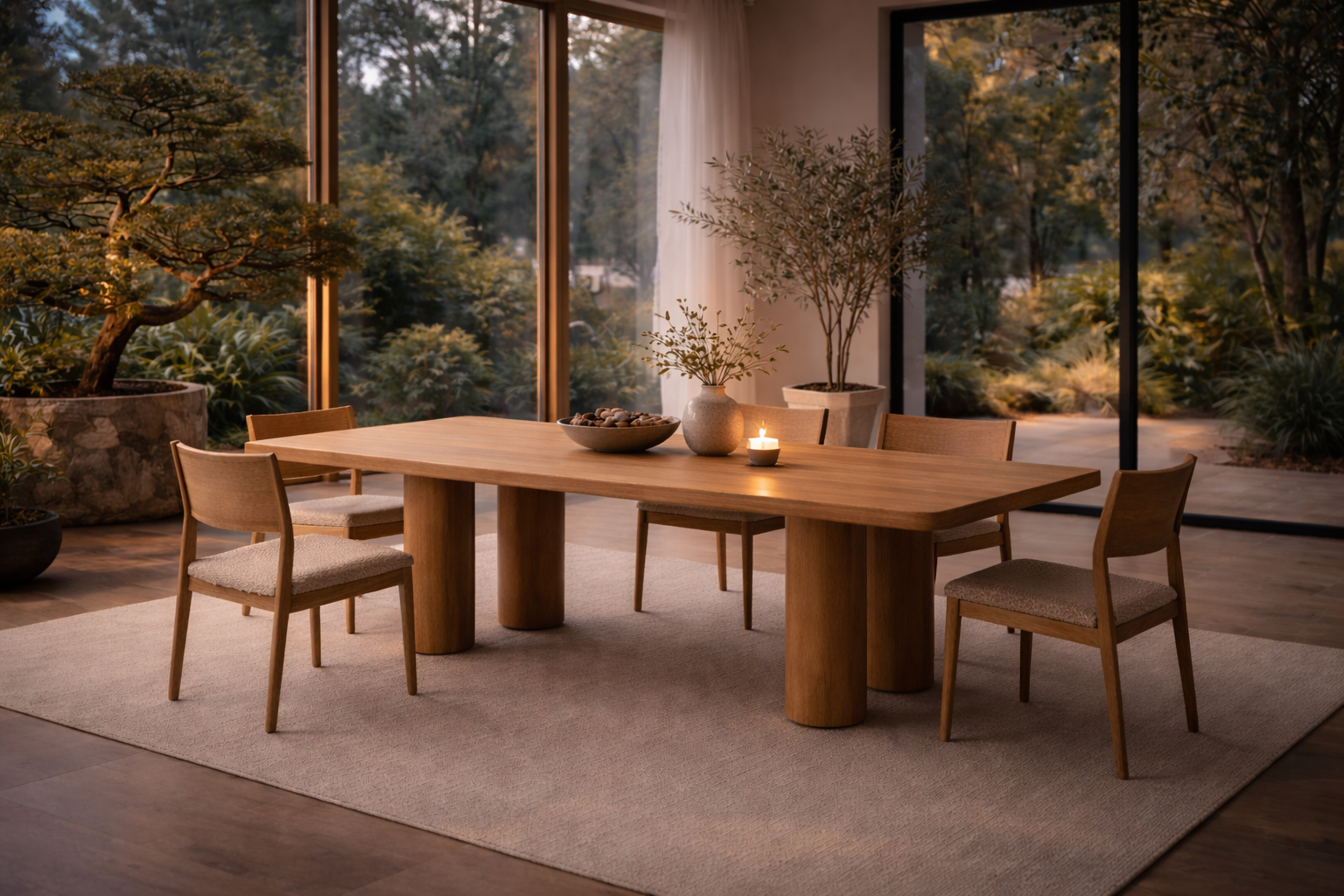 Naturalny stół dębowy TIBIS idealnie wpisuje się w eleganckie, przemyślane aranżacje jadalni i salonów. To mebel, który buduje przestrzeń – pełni funkcję nie tylko użytkową, ale także symboliczną. W nowoczesnym wnętrzu staje się punktem odniesienia dla innych elementów – od lampy nad stołem, przez krzesła, aż po dodatki dekoracyjne. W stylu japandi podkreśla minimalizm i harmonię. W skandynawskiej estetyce – naturalność i światło. W aranżacjach loftowych – dodaje ciepła i tekstury do surowych materiałów. To nowoczesny stół do salonu i jadalni, który inspiruje i przyciąga uwagę.
