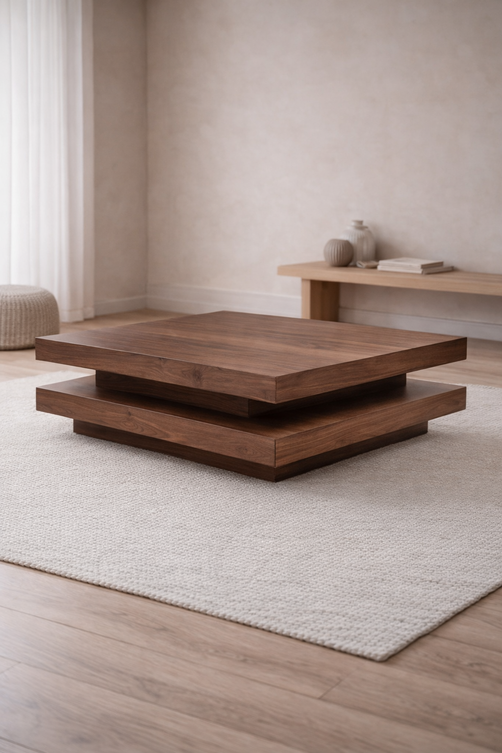 Warstwowa konstrukcja – designerski stolik kawowy z drewna