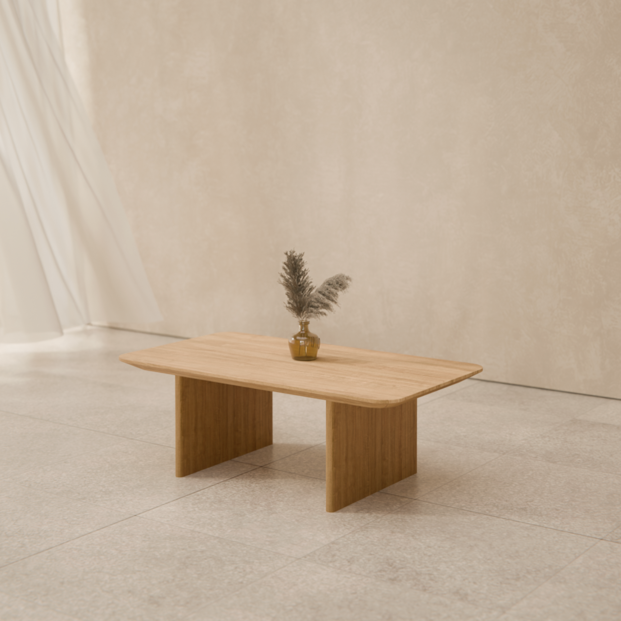 Projekt stolika LUSO wyróżnia się geometryczną prostotą. Dwie solidne nogi z litego drewna tworzą mocną podstawę, która gwarantuje stabilność i nadaje meblowi charakterystyczny, nowoczesny wygląd. To właśnie ten ciekawy detal konstrukcyjny sprawia, że stolik przyciąga wzrok, pozostając jednocześnie wierny zasadzie minimalistycznej elegancji.