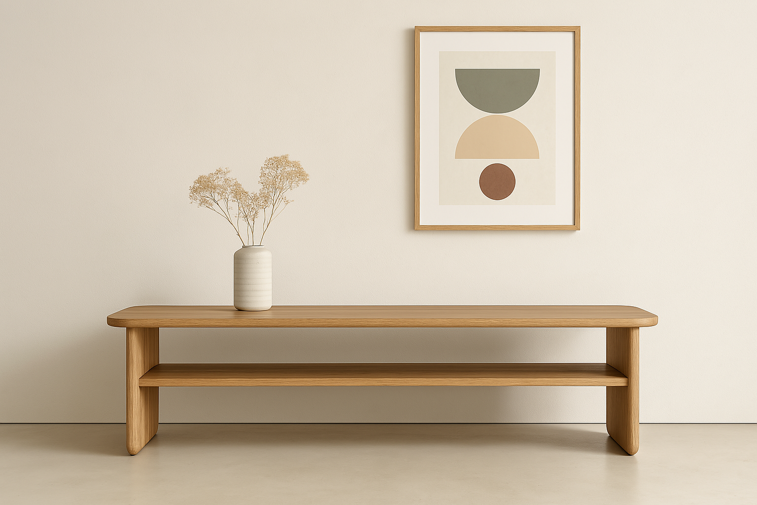 Szafka RTV dębowa LUSO to esencja prostoty i funkcjonalności w najlepszym wydaniu. Wykonana w całości z litego drewna dębowego, wyróżnia się subtelną formą, zaokrąglonymi krawędziami i wyrafinowaną lekkością. Jej otwarta konstrukcja zapewnia swobodną cyrkulację powietrza i doskonałą dostępność sprzętu elektronicznego, co czyni ją idealnym wyborem do nowoczesnych, jasnych i naturalnych wnętrz w stylu japandi, scandi, organic modern i minimalistycznym.