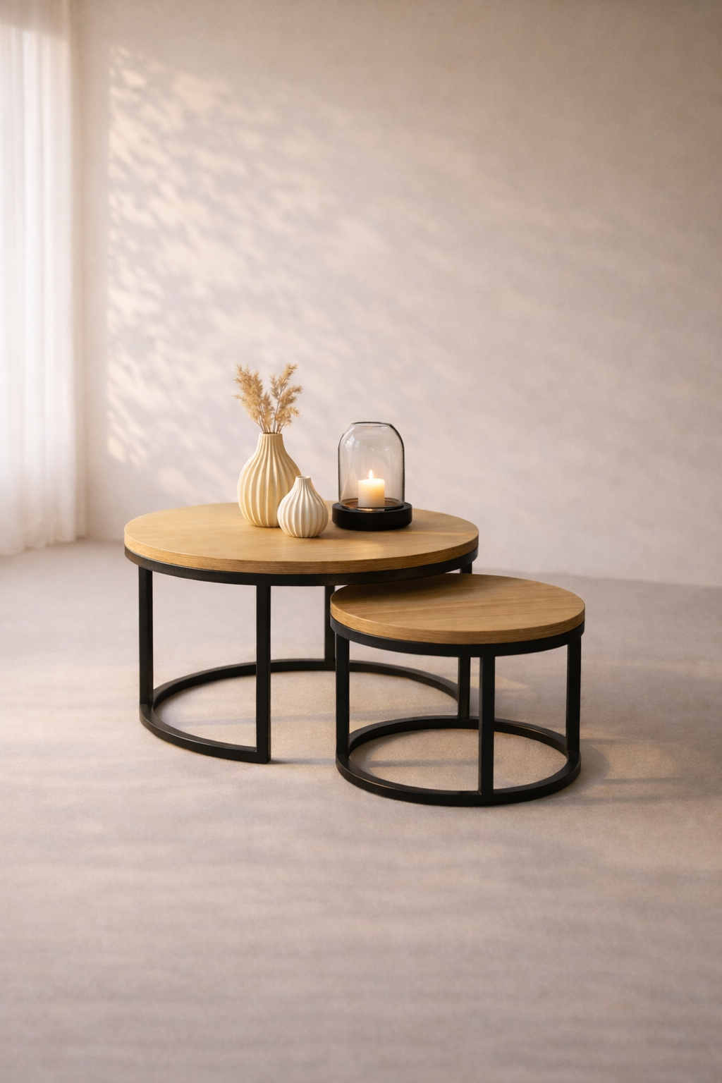 Przedstawiamy Państwu zestaw stolików kawowych wykonany z litego drewna dębowego w stylu rustykalnym lub z litego drewna bezsęcznego (za dopłatą). Solidny stalowy stelaż, który jednocześnie wygląda lekko i nowocześnie, zagwarantuje niebywałą trwałość. Stolik będzie mógł cieszyć Nasze oczy przez długie lata, nie tracąc przy tym nic ze swojej niepowtarzalnej, prostej i pięknej formy.