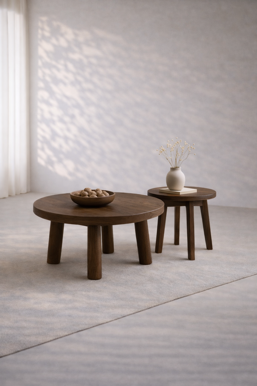 Zestaw ESPRESSO składa się z dwóch stolików o różnej wysokości, co pozwala na ich ustawienie razem – tworząc interesującą, warstwową kompozycję – lub osobno, w zależności od potrzeb. Okrągłe blaty i toczone, zwężane nogi nawiązują do naturalnych, organicznych kształtów i wprowadzają do wnętrza spokój oraz wizualną lekkość. To idealne rozwiązanie dla osób, które szukają funkcjonalnych mebli kawowych o lekkim, nieprzytłaczającym wyglądzie.